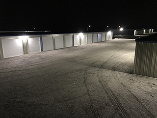 Well-lit parking area for night time access and security.